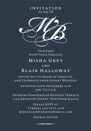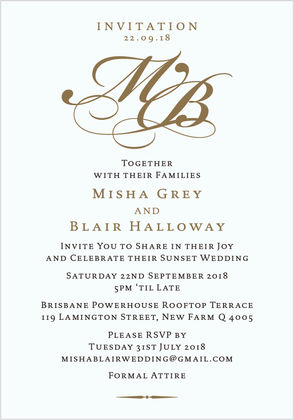 Misha and Blair is our premier classic design option featuring a customised monogram. It's the perfect theme for formal weddings or whenever timeless elegance is key.